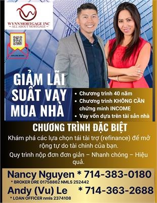 MUA NHÀ KHÔNG CẦN CHỨNG MINH THU NHẬP – LÃI SUẤT THẤP HẤP DẪN! Vay vốn dựa trên tài sản nhà (Home Equity Loan) * Tái Tài Trợ - Lãi Suất Thấp - Chi Phí Thấp * Mượn nợ dễ dàng Nhanh Chóng & Hiệu Quả với NANCY NGỌC: 714-383-0180 * VU ANDY 714-363-2688